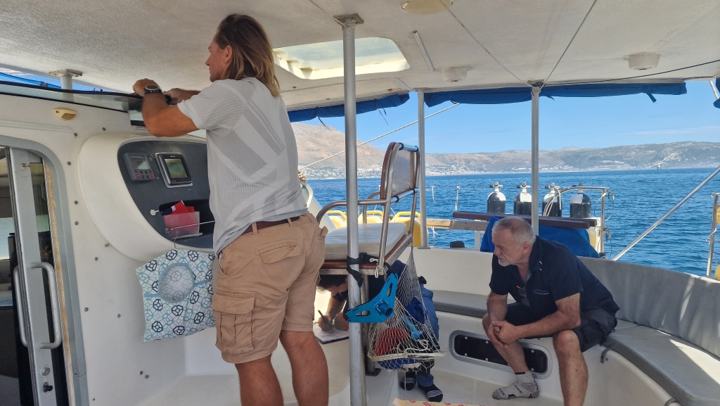 Saturday the 22nd was a “pottering” kind of day and during the 23rd, the decks were cleaned and the interior floors were given a thorough clean too Everything was coated in blue and white dust that gets everywhere while hauled out in a boat yard with bottoms and hulls being sanded all around. An advert for the Caribbean legs went up on their Facebook page and having, over the last week or so, given those who had previously expressed an interest in joining the boat during that time first refusal, the response was immense and immediate. A great deal of time that afternoon was spent responding to everyone that got in touch and that evening, Adie came onboard for dinner. It was nice to be able to host him onboard, on what would be the final opportunity to spend time with him before departing Simons Town later in the week.