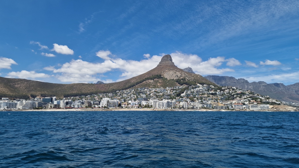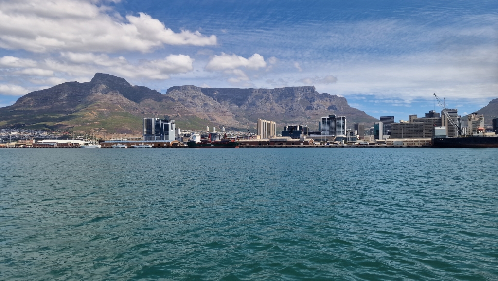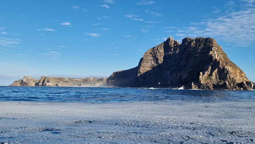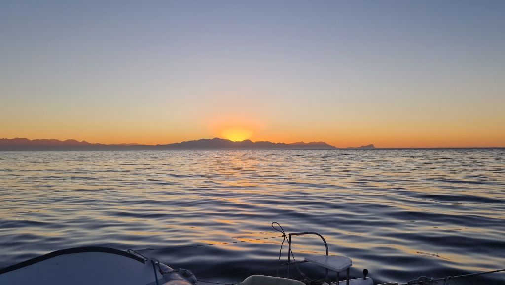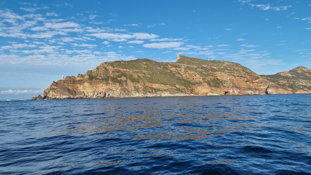 On the 26th, there was a fair bit of water in the bottom of the starboard engine room and after pumping it out it was discovered that 2 bolts were missing from the saildrive base. How on earth that happened, they will never know! They went out into the bay again for another couple of hours and for the first time ever, the autopilot didn’t work at all….there had been intermittent issues over the last couple of months, but it always worked after half an hour or so. Another thing to add to the job list! That afternoon, they visited the SA Naval Museum which was very interesting but they had to leave before they had seen everything as they were closing. They strolled down the pier to look at the Charles Darwin sculpture and the statue of the Standby Diver, put there in honour of all SA Navy divers past, present and future before sitting in the sunshine at the Yacht Club to enjoy one last beer. At 06.20 on the 27th, they were away from the dock and bidding Simons Town a fond farewell having been there for over 2 months. The sunrise was colourful and still and the colours on the mountains behind the town were gorgeous. It was a perfect day for rounding The Cape Of Good Hope – light winds and calm seas and the scenery was breath taking with photos not doing any of it justice. They were, of course, motoring to continue the required run in procedure, but they wouldn’t have been able to sail anyway due to the lack of wind and so they sat back, with the auto pilot deciding to work again, and enjoyed the 8 hour trip to The Royal Cape Yacht Club, Cape Town during which the saw many seals, 2 whales and a sunfish.